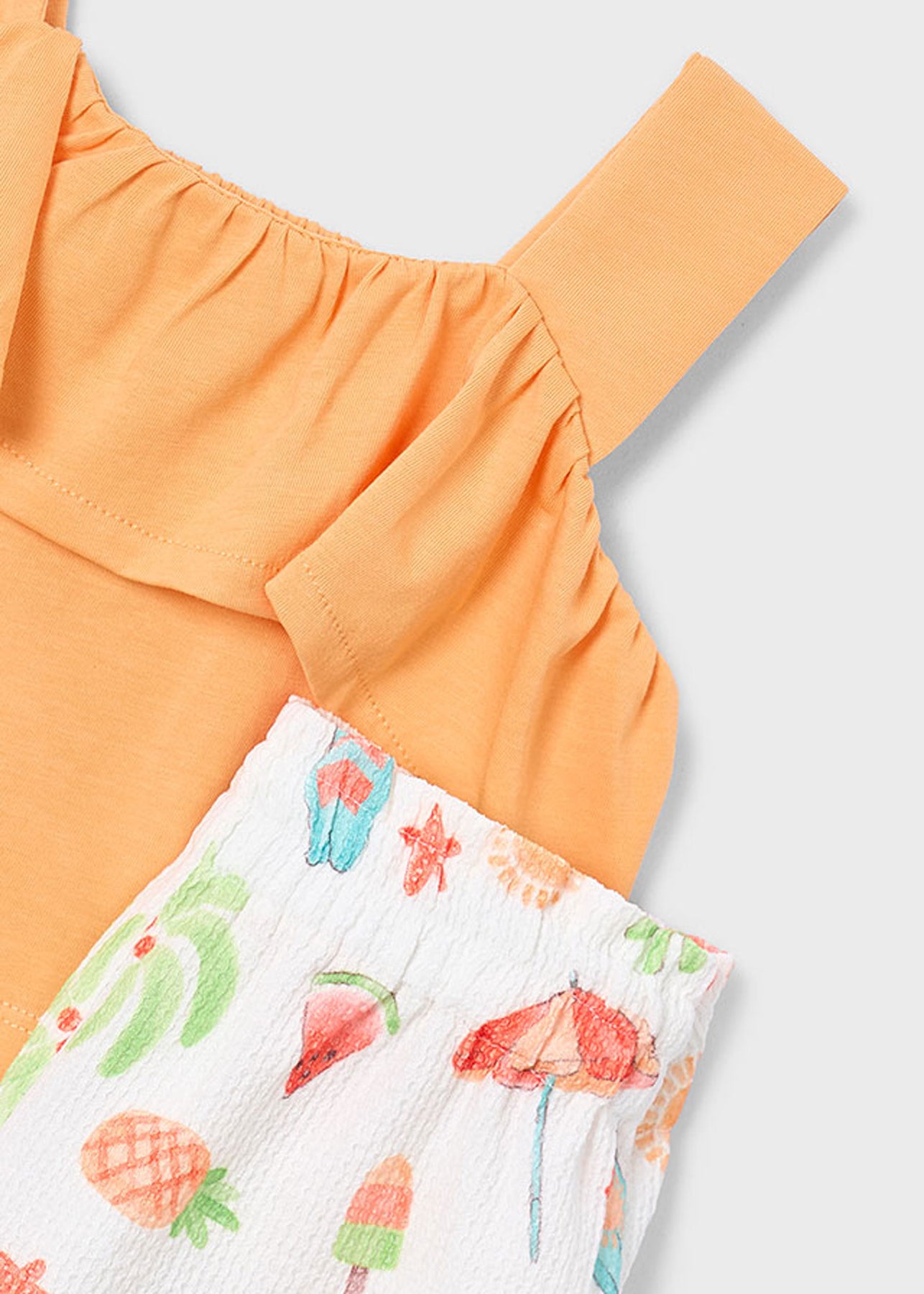 Illumina la giornata della tua piccola con l'allegra vivacità del completo MAYORAL 3230, perfetto per la stagione primaverile ed estiva!
