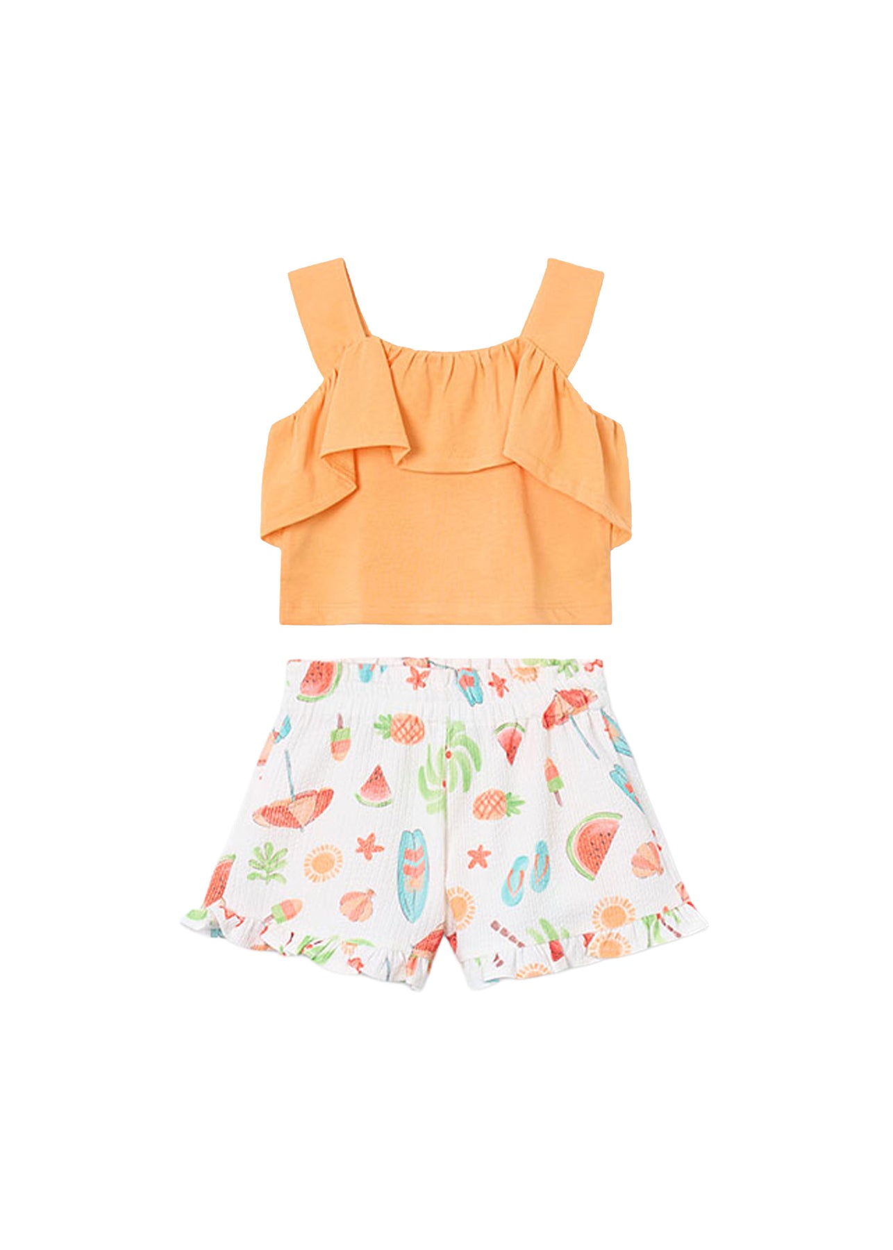 L'ideale per essere indossato durante i momenti di gioco e di relax, questo completo arancione MAYORAL è perfetto per le piccole signorine che amano vivere i propri giorni con allegria e stile. Scoprilo subito nel nostro e-shop!