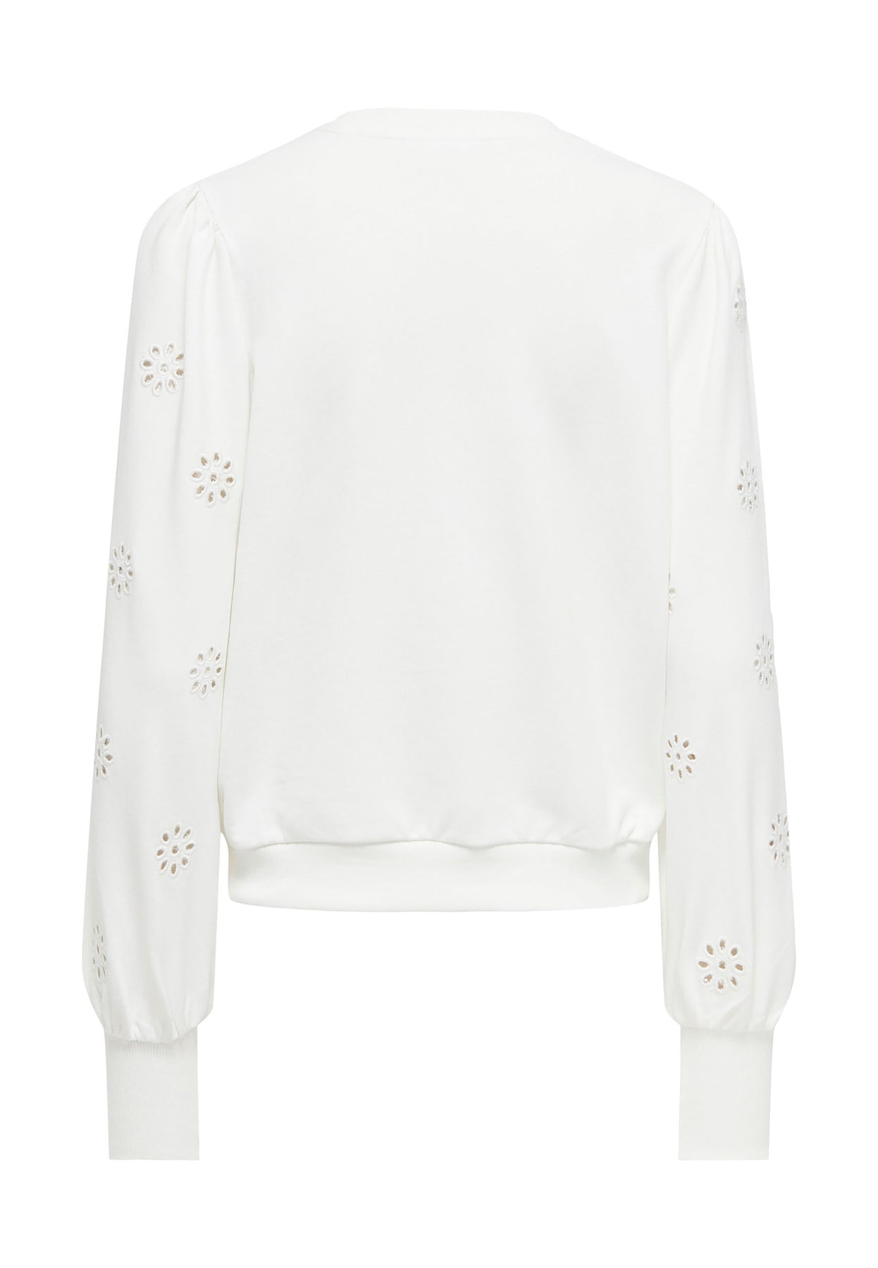 - Girocollo, maniche lunghe con ricamo e polsini alti con elastico;