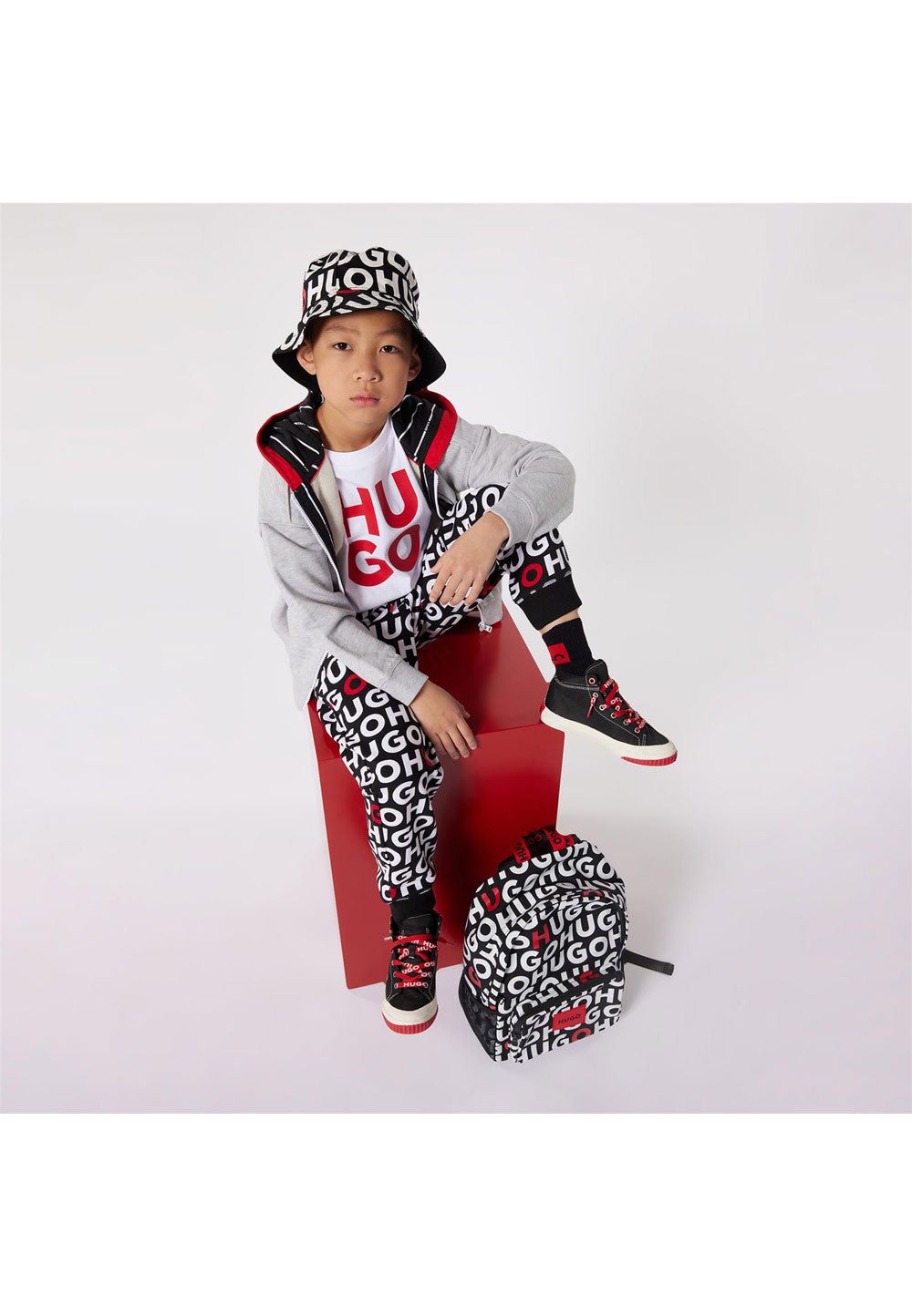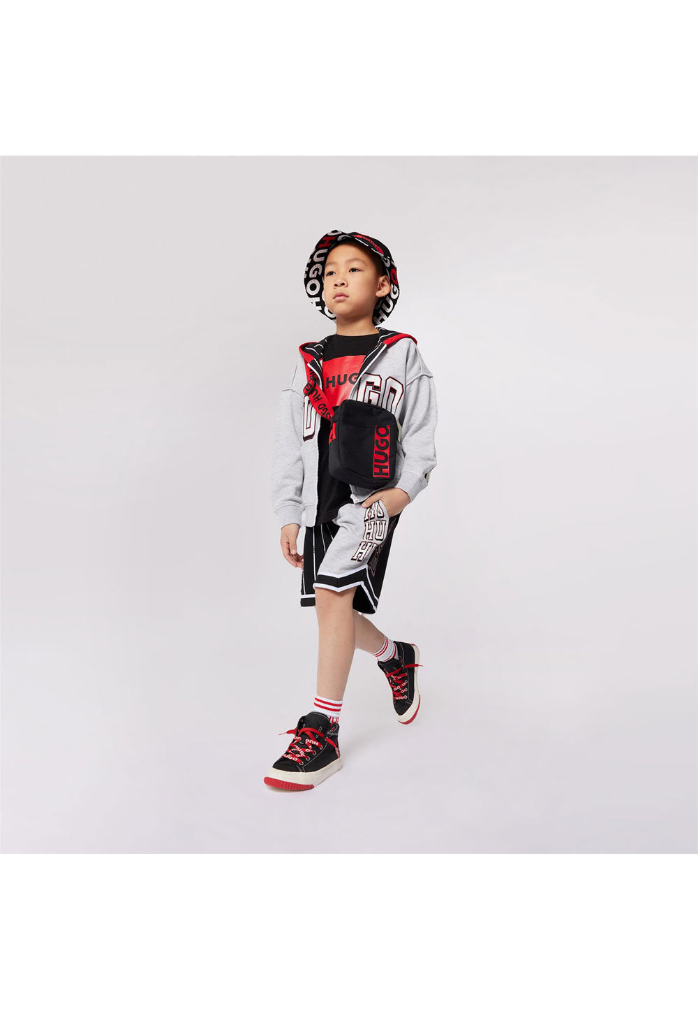 La felpa HUGO da bambino in colore grigio è caratterizzata dalla stampa del logo sul davanti e dalla chiusura full zip. Il cappuccio è realizzato in contrasto di colore per un tocco di originalità, mentre il tessuto in cotone garzato garantisce comfort e morbidezza al tatto. I polsini e il fondo elastici assicurano una vestibilità aderente e confortevole. Ideale per un look casual ma stiloso, perfetto per ogni occasione.